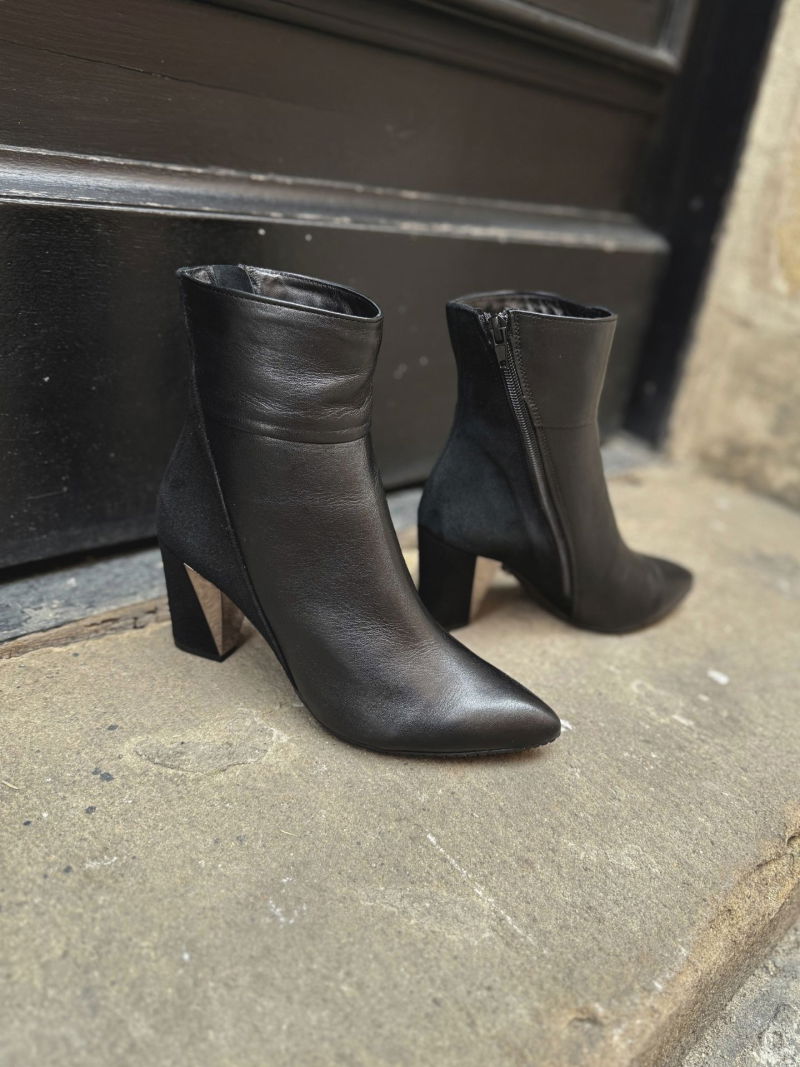 Elegant suede ankle boots with decorative heels, combining elegance and comfort in one