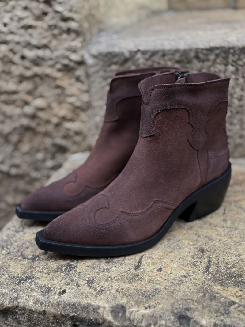 Women's Nubuck Leather Cowboy Boots in a Fashionable Chocolate Color
