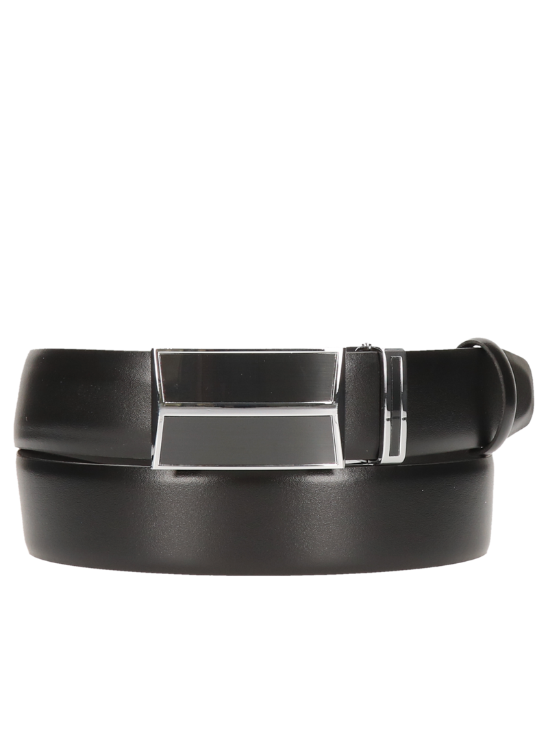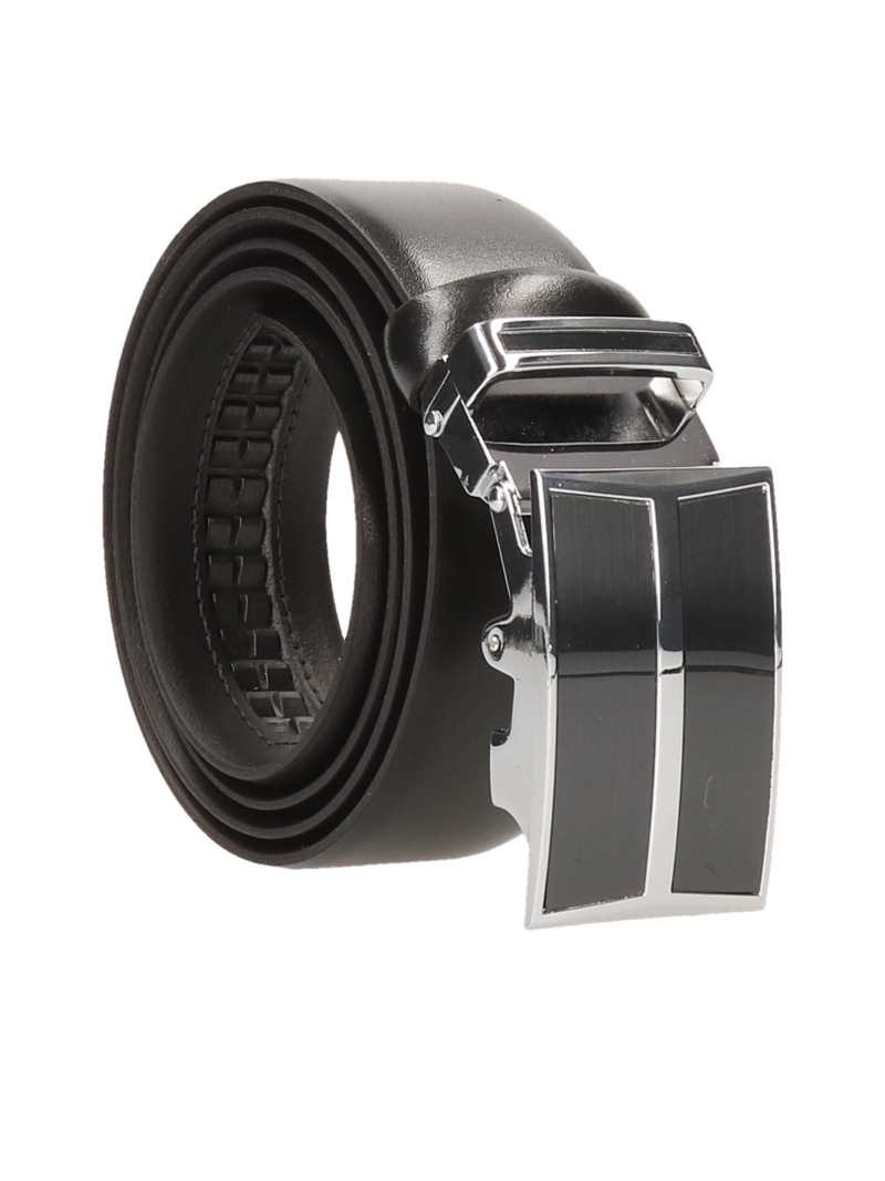 Black leather men's belt with buckle, trouser belt, men's suit belt