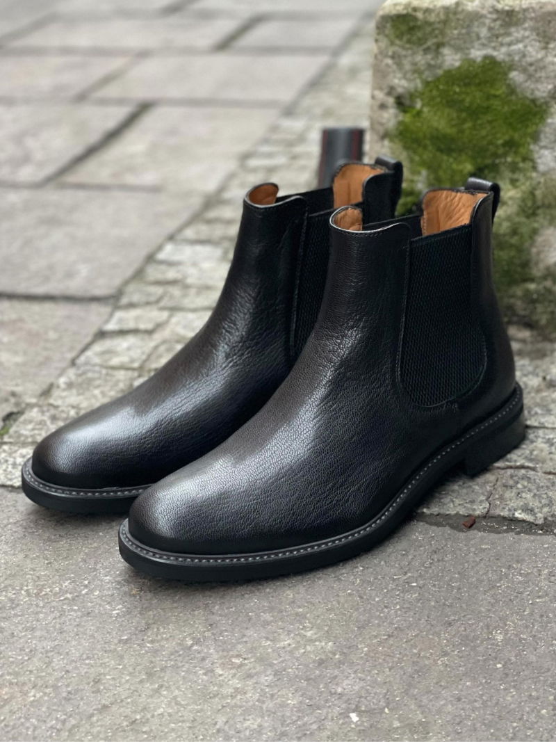 Care and maintenance of grain leather shoes requires regularity and appropriate measures, especially depending on the season. After each wearing, wipe the shoes of dust and dirt with a soft cloth or BRUSH. You can use a SELF-SHINING CLEANER if your shoes don't require deeper cleaning. Insert SHOE TREES to keep the shape of the shoes and prevent wrinkling of the leather. Once a week, use a soft cloth dampened with lukewarm water to remove dirt and debris. Allow the shoes to dry naturally. Use an applicator to apply clear black SHOE CREAM to the surface of your shoes and let it soak in for a few minutes. Use a SHOE POLISHING GLOVE mitt to get a beautiful shine. Polish your shoes in circular motions until you get a satisfactory result. Once a month, apply a thin layer of clear leather grease to your shoes. The grease further moisturizes and protects the leather from moisture. After applying, leave the shoes for a few hours or overnight so that the BLACK GREASE is well absorbed. Then polish the shoes with a polishing mitt. For seasonal care of grain leather shoes, we divide it into two periods: SUMMER protection from dust and dirt. Use a care spray regularly to provide protection. Apply every few weeks or after every cleaning. Leather can dry out faster in hot months. Use leather grease monthly to keep your leather moisturized and supple. WINTER it's important to care for footwear to protect against moisture and salt. Apply leather grease regularly every 2-3 weeks. The grease forms a protective barrier that prevents water penetration. An additional tip is to dry your shoes, if your shoes get wet, dry them at room temperature, away from direct heat sources to avoid damaging the leather. Use a WOODEN SHOE HORN when putting on shoes to prevent damage to the heels. With regular care, your grain leather shoes will look elegant and serve for many years.