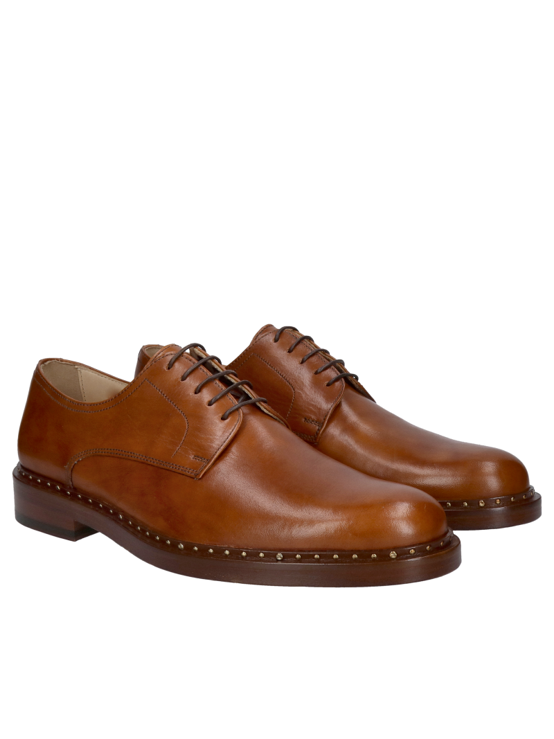 Care and maintenance of grain leather shoes requires regularity and appropriate measures, especially depending on the season. After each wearing, wipe the shoes of dust and dirt with a soft cloth or BRUSH. You can use a SELF-SHINING CLEANER if your shoes don't require deeper cleaning. Insert SHOES TREES to keep the shape of the shoes and prevent wrinkling of the leather. Once a week, use a soft cloth dampened with lukewarm water to remove dirt and debris. Allow the shoes to dry naturally. Use an applicator to apply clear SHOE CREAM to the surface of your shoes and let it soak in for a few minutes. Use a SHOES POLISHING GLOVE to get a beautiful shine. Polish your shoes in circular motions until you get a satisfactory result. Once a month, apply a thin layer of clear leather grease to your shoes. The grease further moisturizes and protects the leather from moisture. After applying, leave the shoes for a few hours or overnight so that the colorless GREASE for leather is well absorbed. Then polish the shoes with a polishing mitt. For seasonal care of grain leather shoes, we divide it into two periods: SUMMER protection from dust and dirt. Use a care spray regularly to provide protection. Apply every few weeks or after every cleaning. Leather can dry out faster in hot months. Use leather grease monthly to keep your leather moisturized and supple. WINTER it's important to care for footwear to protect against moisture and salt. Apply leather grease regularly every 2-3 weeks. The grease forms a protective barrier that prevents water penetration. An additional tip is to dry your shoes, if your shoes get wet, dry them at room temperature, away from direct heat sources to avoid damaging the leather. Use a WODDEN SHOES HORN when putting on shoes to prevent damage to the heels. With regular care, your grain leather shoes will look elegant and serve for many years.