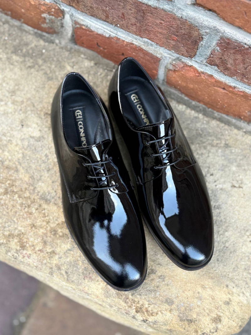 The care of patent leather shoes requires special attention in order to maintain their shine and appearance for longer. First of all, gently wipe your shoes with a soft material; you can use a POLISHING GLOVE to remove dirt and dust. Avoid using rough materials that can scratch the patent leather. Spray the shoes evenly with VERNILUX spray for patent leather from a distance of approximately 20-30 cm. After applying the spray, use a soft, clean cloth to gently polish your shoes. The spray for patent leather cleans and shines, restores shine and vibrancy, removes minor scratches caused by sand and dust, and effectively removes dirt. After cleaning, insert the SHOE TREES. The shoe lasts will help maintain the shape of your shoes, preventing deformation and creasing that can occur during storage. Always use a WOODEN SHOE HORN when putting your shoes on. This helps to avoid damaging the heel of the shoe and maintain the original shape of the shoe. Repeat the cleaning and care process every few weeks, depending on how often you wear your shoes. The more often you wear your shoes, the more often you should care for them. Store your shoes in a dry, cool place, away from direct sunlight and heat sources.
