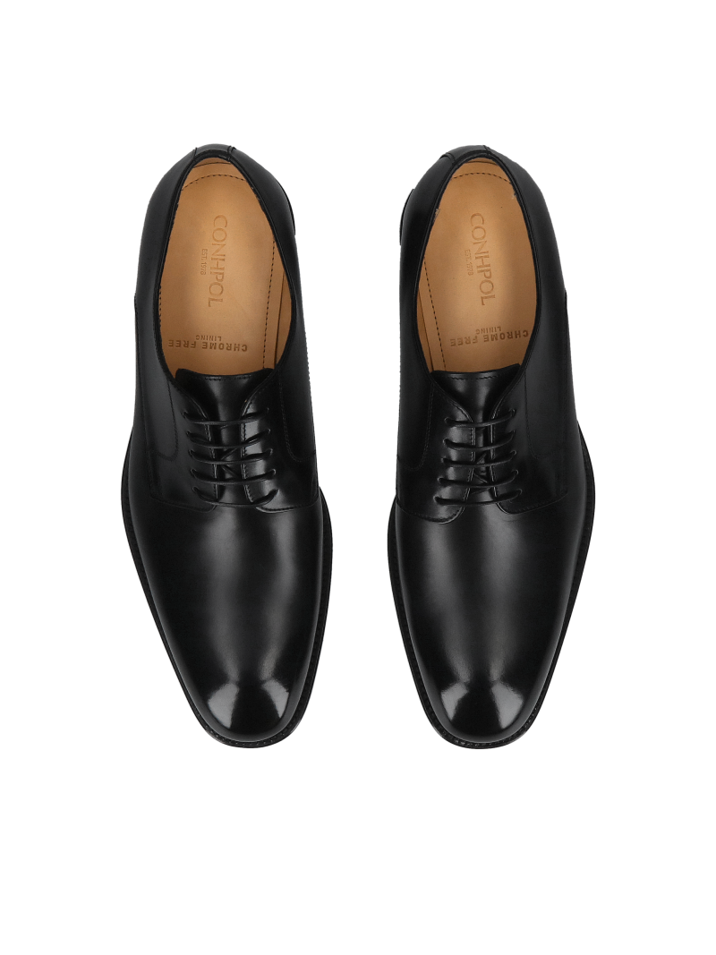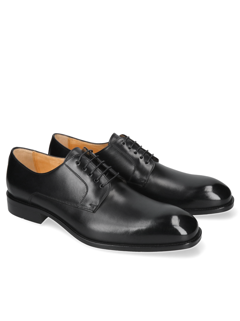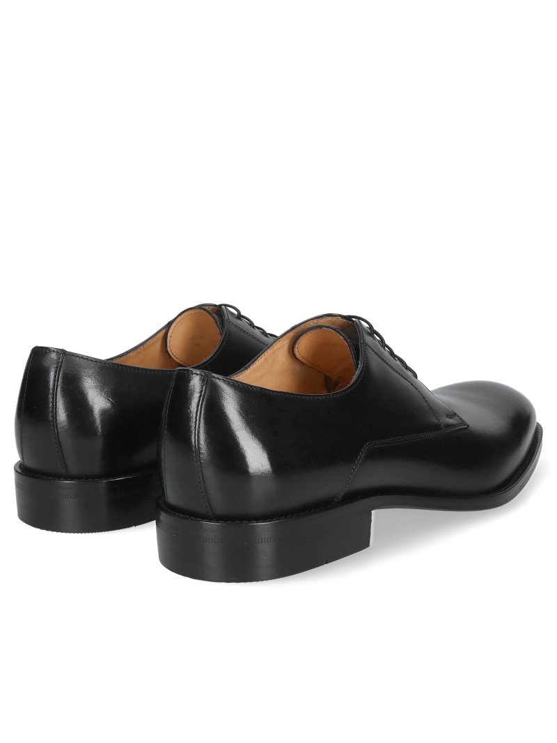 Care and maintenance of grain leather shoes requires regularity and appropriate measures, especially depending on the season. After each wearing, wipe the shoes of dust and dirt with a soft cloth or BRUSH. You can use a SELF-SHINING CLEANER if your shoes don't require deeper cleaning. Insert SHOE TREES to keep the shape of the shoes and prevent wrinkling of the leather. Once a week, use a soft cloth dampened with lukewarm water to remove dirt and debris. Allow the shoes to dry naturally. Use an applicator to apply clear black SHOE CREAM to the surface of your shoes and let it soak in for a few minutes. Use a SHOE POLISHING GLOVE mitt to get a beautiful shine. Polish your shoes in circular motions until you get a satisfactory result. Once a month, apply a thin layer of clear leather grease to your shoes. The grease further moisturizes and protects the leather from moisture. After applying, leave the shoes for a few hours or overnight so that the BLACK GREASE is well absorbed. Then polish the shoes with a polishing mitt. For seasonal care of grain leather shoes, we divide it into two periods: SUMMER protection from dust and dirt. Use a care spray regularly to provide protection. Apply every few weeks or after every cleaning. Leather can dry out faster in hot months. Use leather grease monthly to keep your leather moisturized and supple. WINTER it's important to care for footwear to protect against moisture and salt. Apply leather grease regularly every 2-3 weeks. The grease forms a protective barrier that prevents water penetration. An additional tip is to dry your shoes, if your shoes get wet, dry them at room temperature, away from direct heat sources to avoid damaging the leather. Use a WOODEN SHOE HORN when putting on shoes to prevent damage to the heels. With regular care, your grain leather shoes will look elegant and serve for many years.