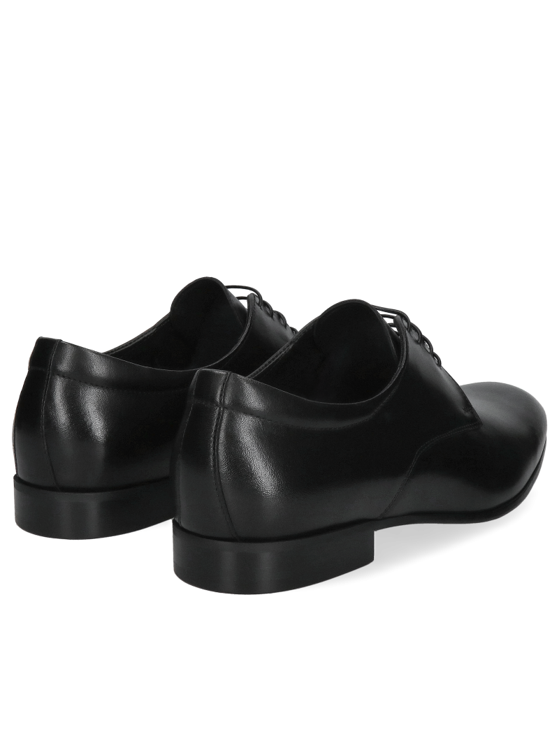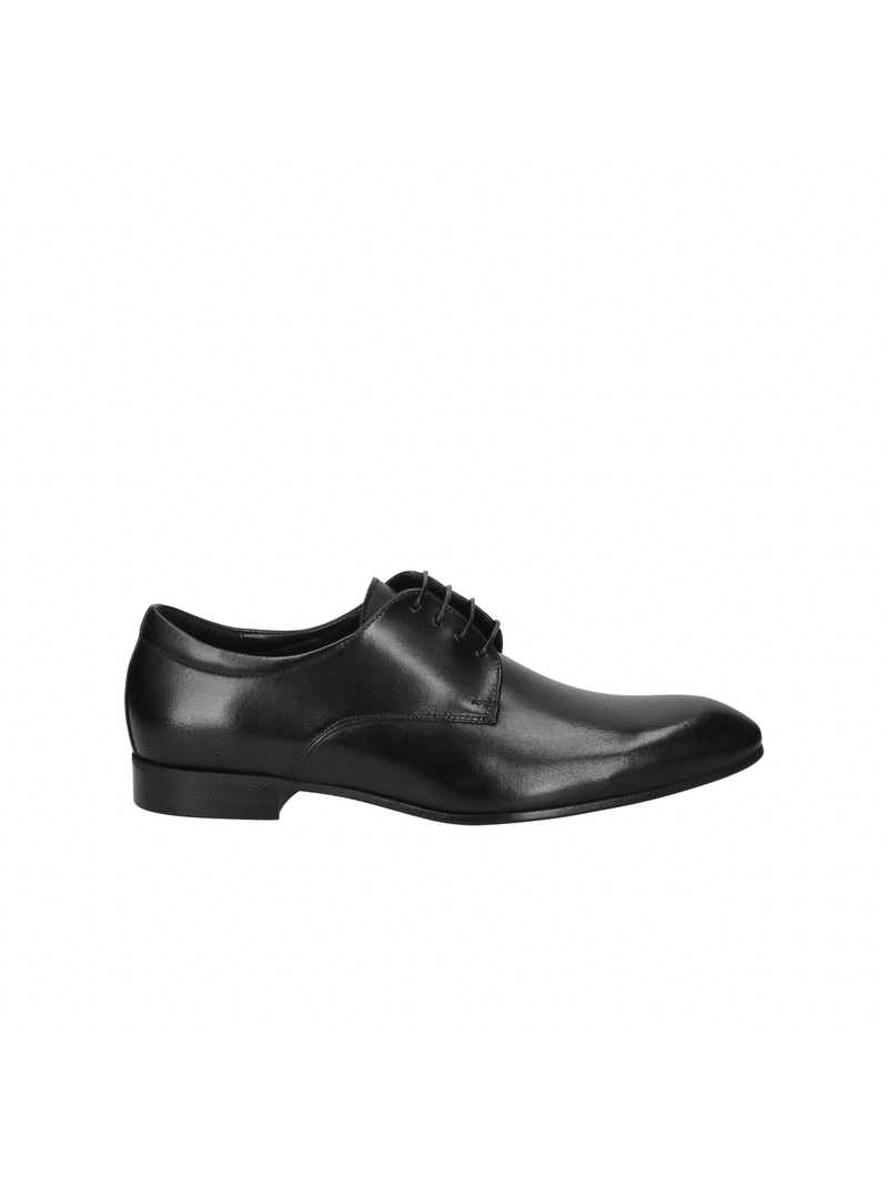 Kevin leather Derby shoes are the quintessence of masculine elegance. Their classic cut and versatile black color make them a perfect complement to any formal outfit. They are crafted from the highest quality full-grain cowhide, ensuring durability and comfort. The shoes have a standard width, ensuring a perfect fit. The sole is made of high-quality material, providing excellent grip and cushioning.