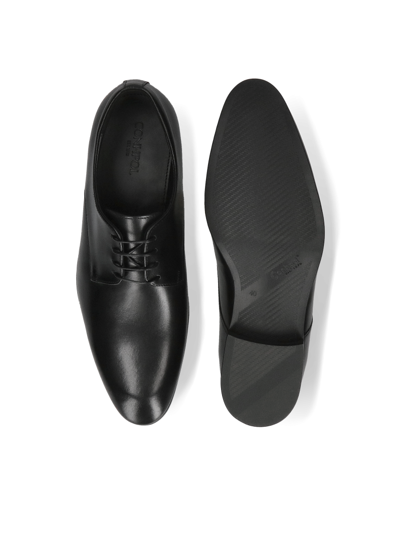 Highest quality workmanship: Each pair of shoes is handcrafted with attention to the smallest detail, ensuring durability and aesthetic appeal. Comfort: A soft leather lining and flexible sole ensure comfort even during extended wear. Universal design: The classic cut and black color make these shoes suitable for any formal outfit. Polish product: By choosing Conhpol shoes, you support Polish production and choose quality. Wide range of sizes: Thanks to the wide range of sizes available, every man will find the perfect pair of shoes.