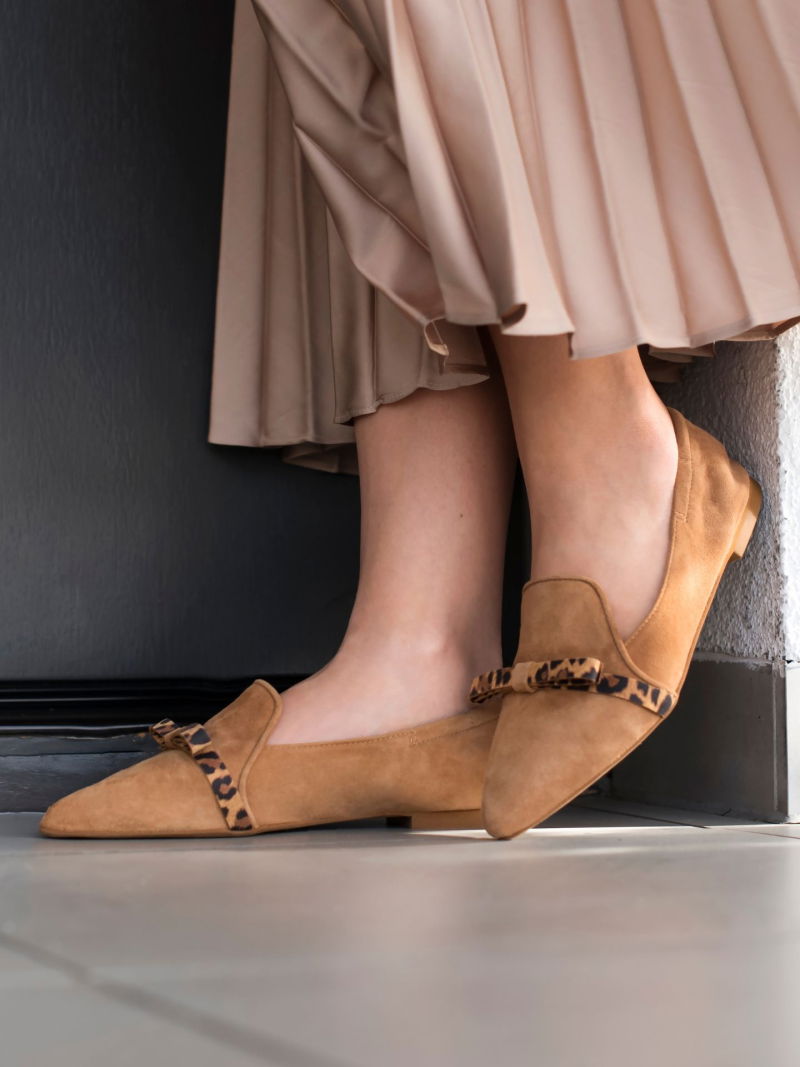 Women's cuoio loafers, light and comfortable with a delicate bow