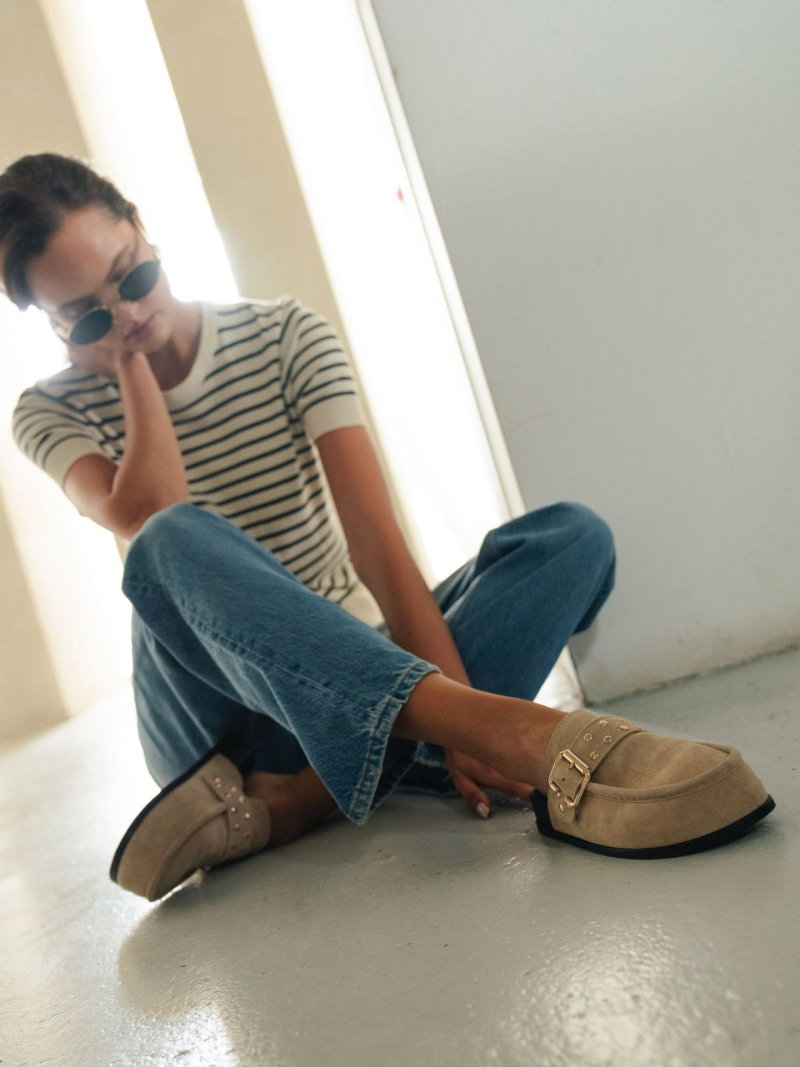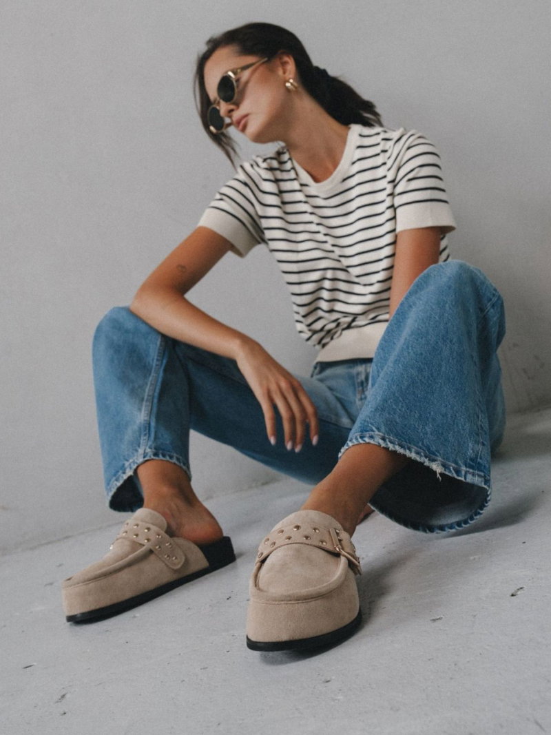 Women's suede mules, comfortable women's flip-flops with a covered front