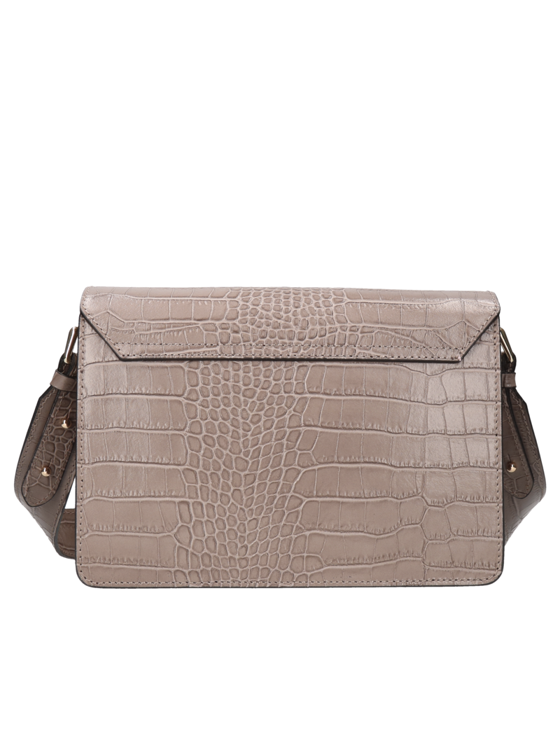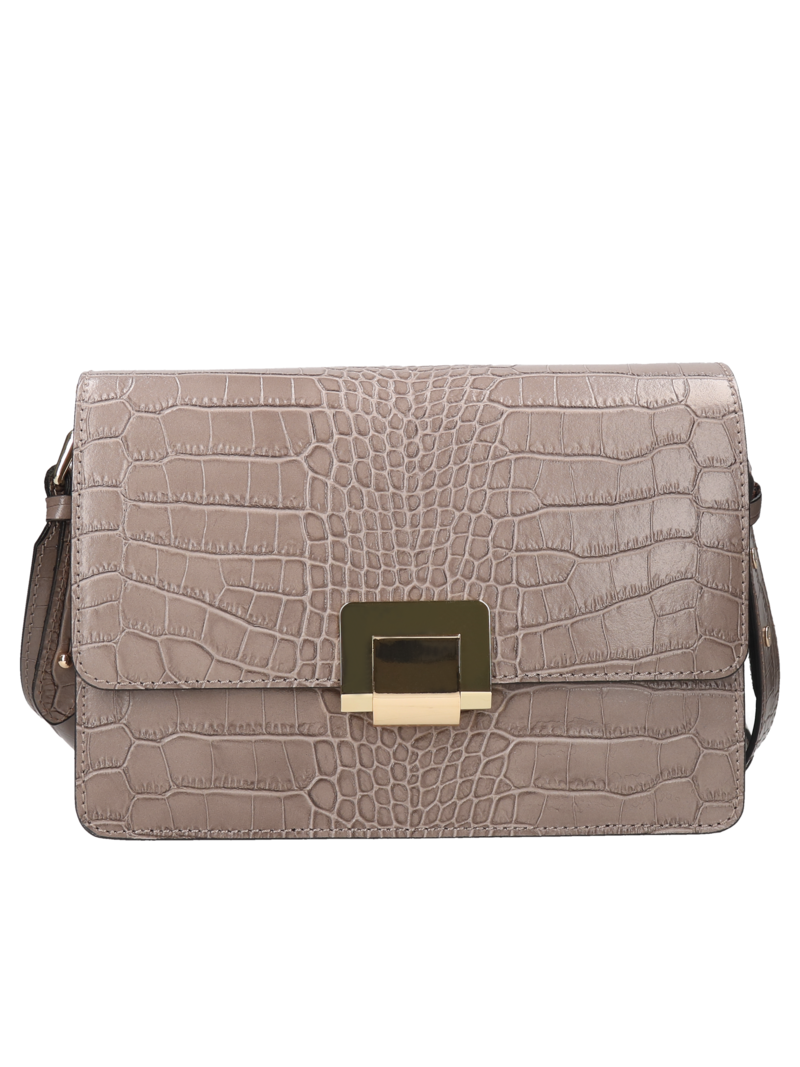 Dark beige bag Ursa was made of top-quality natural leather. A fantastic, exotic pattern was embossed on the whole surface. Thanks to that the bag gets an unusual look. Its advantage is a universal color. It makes the Ursa handbag a perfect addition to casual and elegant outfits. The small, yet roomy model, will accommodate all your essentials. Additionally, the bag has a smaller open pocket inside, for example, for your phone. The dark beige Ursa bag has gold hardware and a 3.5 cm wide strap.