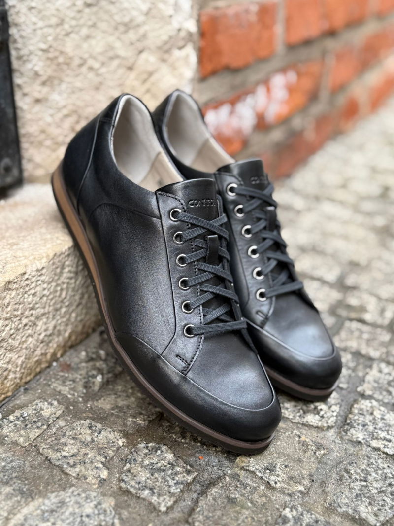 Care and maintenance of grain leather shoes requires regularity and appropriate measures, especially depending on the season. After each wearing, wipe the shoes of dust and dirt with a soft cloth or BRUSH. You can use a SELF-SHINING CLEANER if your shoes don't require deeper cleaning. Insert SHOE TREES to keep the shape of the shoes and prevent wrinkling of the leather. Once a week, use a soft cloth dampened with lukewarm water to remove dirt and debris. Allow the shoes to dry naturally. Use an applicator to apply clear black SHOE CREAM to the surface of your shoes and let it soak in for a few minutes. Use a SHOE POLISHING GLOVE mitt to get a beautiful shine. Polish your shoes in circular motions until you get a satisfactory result. Once a month, apply a thin layer of clear leather grease to your shoes. The grease further moisturizes and protects the leather from moisture. After applying, leave the shoes for a few hours or overnight so that the BLACK GREASE is well absorbed. Then polish the shoes with a polishing mitt. For seasonal care of grain leather shoes, we divide it into two periods: SUMMER protection from dust and dirt. Use a care spray regularly to provide protection. Apply every few weeks or after every cleaning. Leather can dry out faster in hot months. Use leather grease monthly to keep your leather moisturized and supple. WINTER it's important to care for footwear to protect against moisture and salt. Apply leather grease regularly every 2-3 weeks. The grease forms a protective barrier that prevents water penetration. An additional tip is to dry your shoes, if your shoes get wet, dry them at room temperature, away from direct heat sources to avoid damaging the leather. Use a WOODEN SHOE HORN when putting on shoes to prevent damage to the heels. With regular care, your grain leather shoes will look elegant and serve for many years.