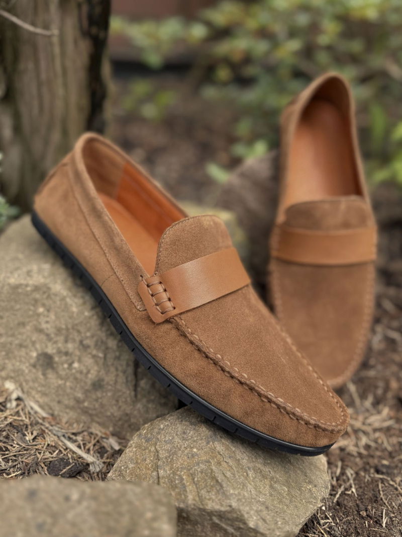 Men's elegant moccasins, comfortable slip-ons made of suede leather