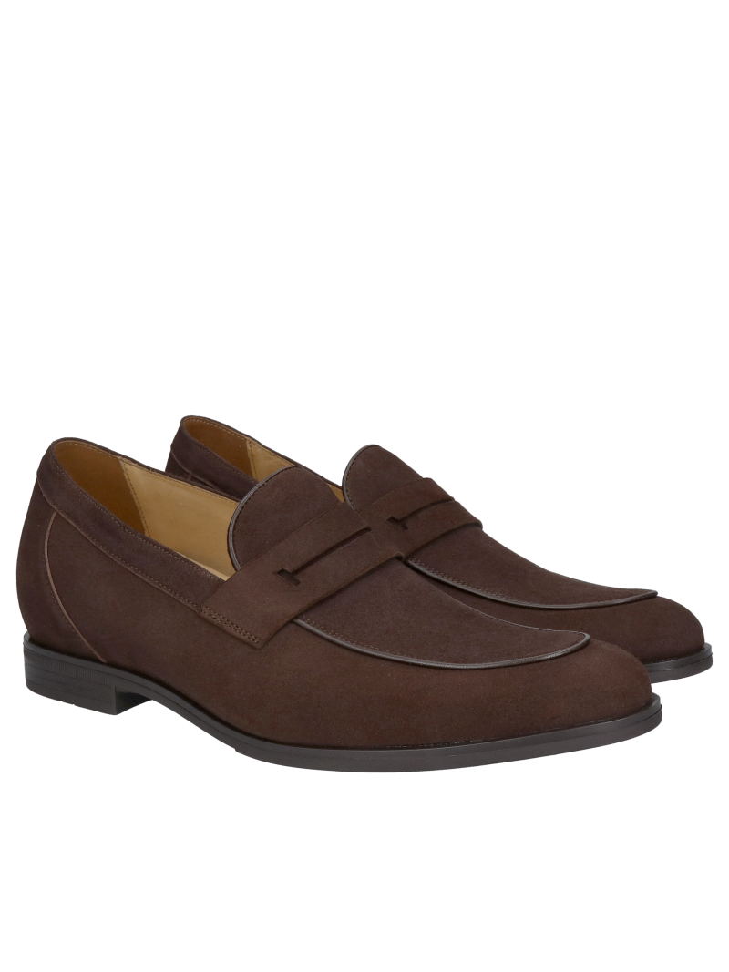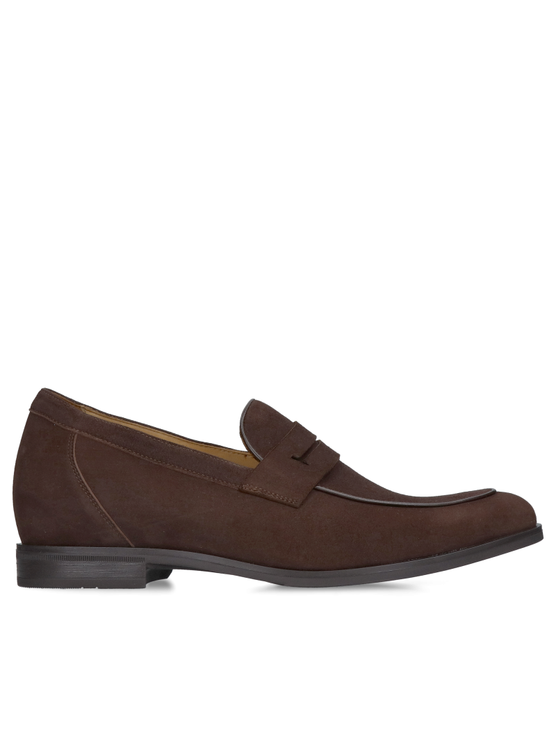 Casual elevator shoes, loafers in natural suede leather