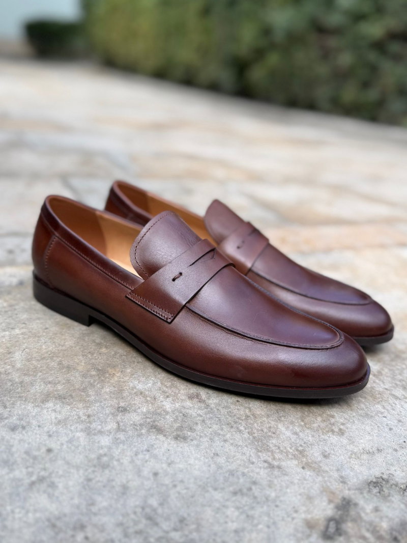 Men's slip-on shoes, brown men's loafers, elegant slip-on shoes made of natural leather