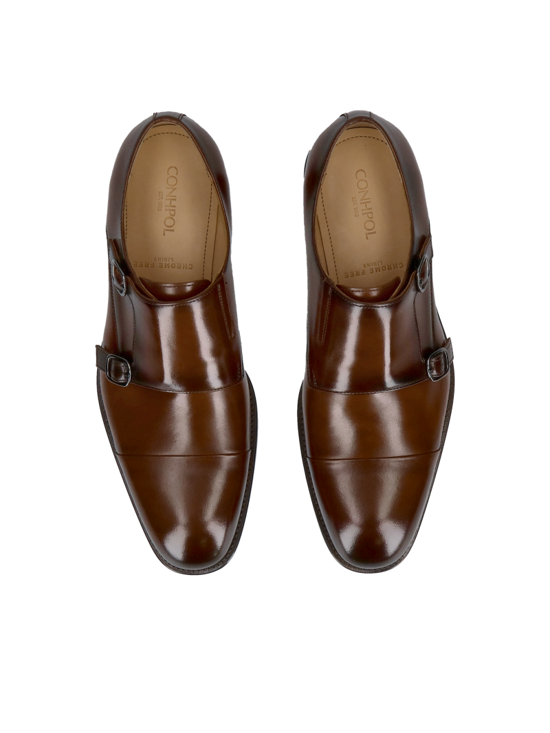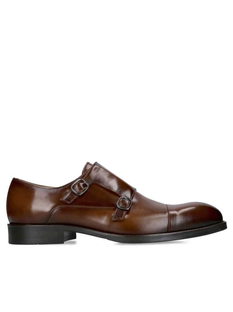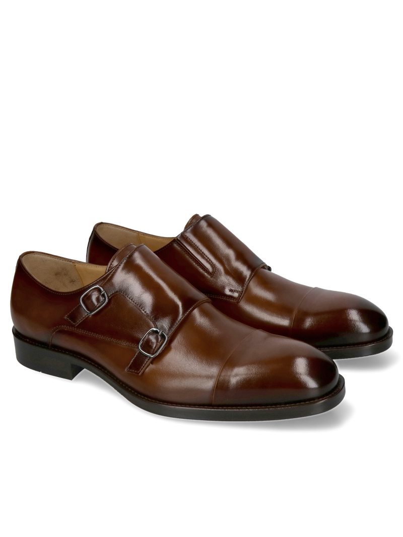 Leather monks, hand-painted, men's shoes elegant brown