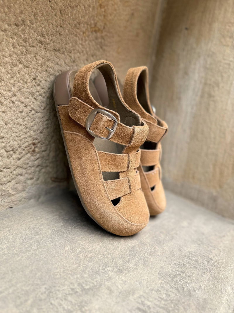 Woven women's shoes without heels, low-heeled sandals with closed toes