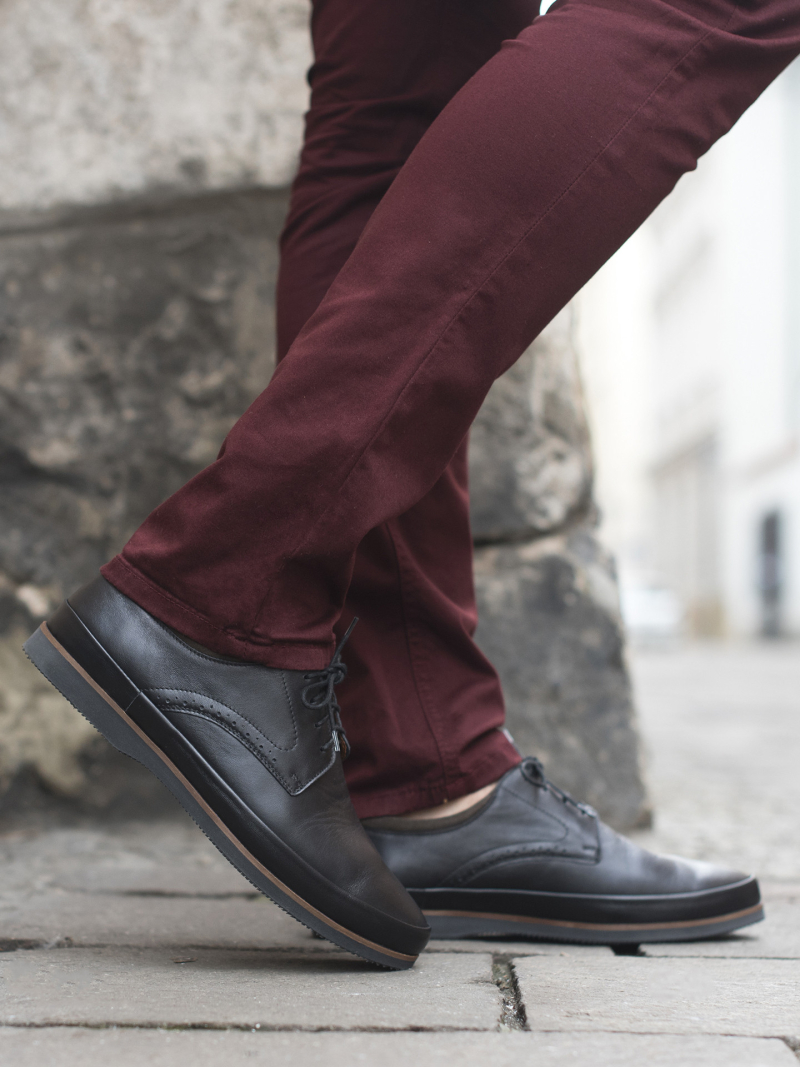 Męskie półbuty czarne, skórzane derby