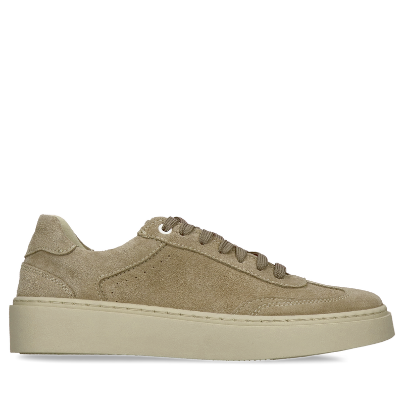 Beżowe damskie letnie sneakersy ze skóry zamszowej oraz przewiewnego materiału