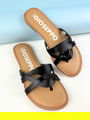 Klapki czarne damskie regulowanym zapięciem na każdą stopę