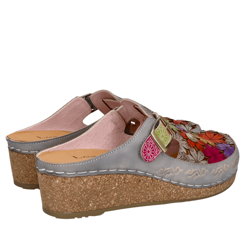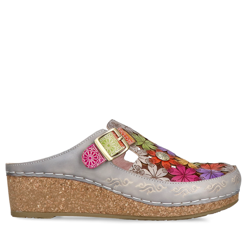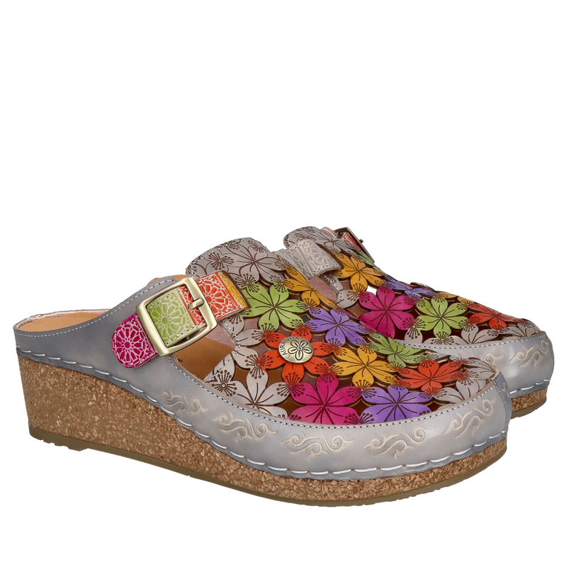 Klapki mule z zakrytymi palcami na wygodnym korku, kolorowe chodaki ze skóry
