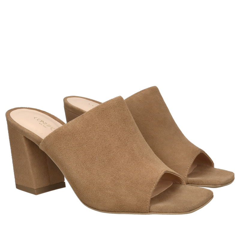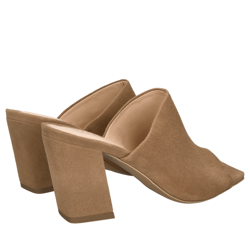 Zamszowe klapki na słupku, wygodne klapki na obcasie ze skóry