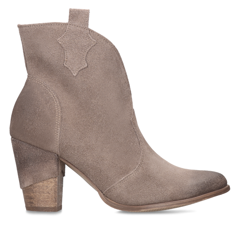 Damskie szare kowbojki Agathe z delikatnej skóry welurowej na słupku