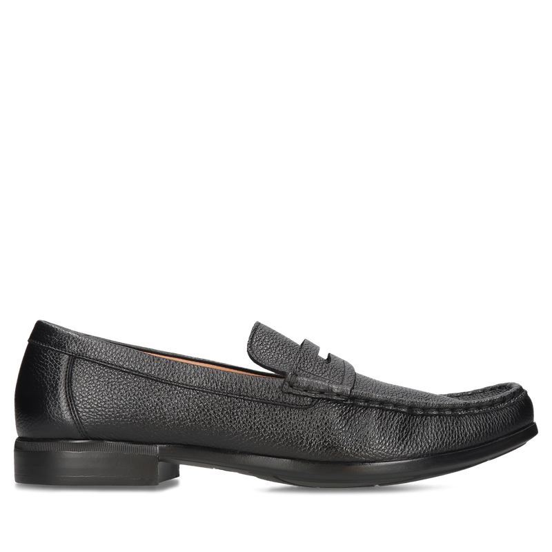 Mokasyny męskie Adriano wykonane zostały z miękkiej skóry licowej, wyróżniającej się trwałością. Skóra jest odporna na odkształcanie i wykazuje niską wrażliwość na wilgoć i pozostałe warunki atmosferyczne. Mocna gumowa podeszwa zapewnia stopie odpowiednią stabilność i amortyzację podczas chodzenia. Miękka wkładka wewnętrzna dobrze dopasowuje się do stopy, a naturalny materiał cholewki gwarantuje odpowiednią cyrkulację powietrza. Skórzane mokasyny Adriano to modne obuwie codzienne, które sprawdzi się do pracy biurowej lub na spotkania towarzyskie.