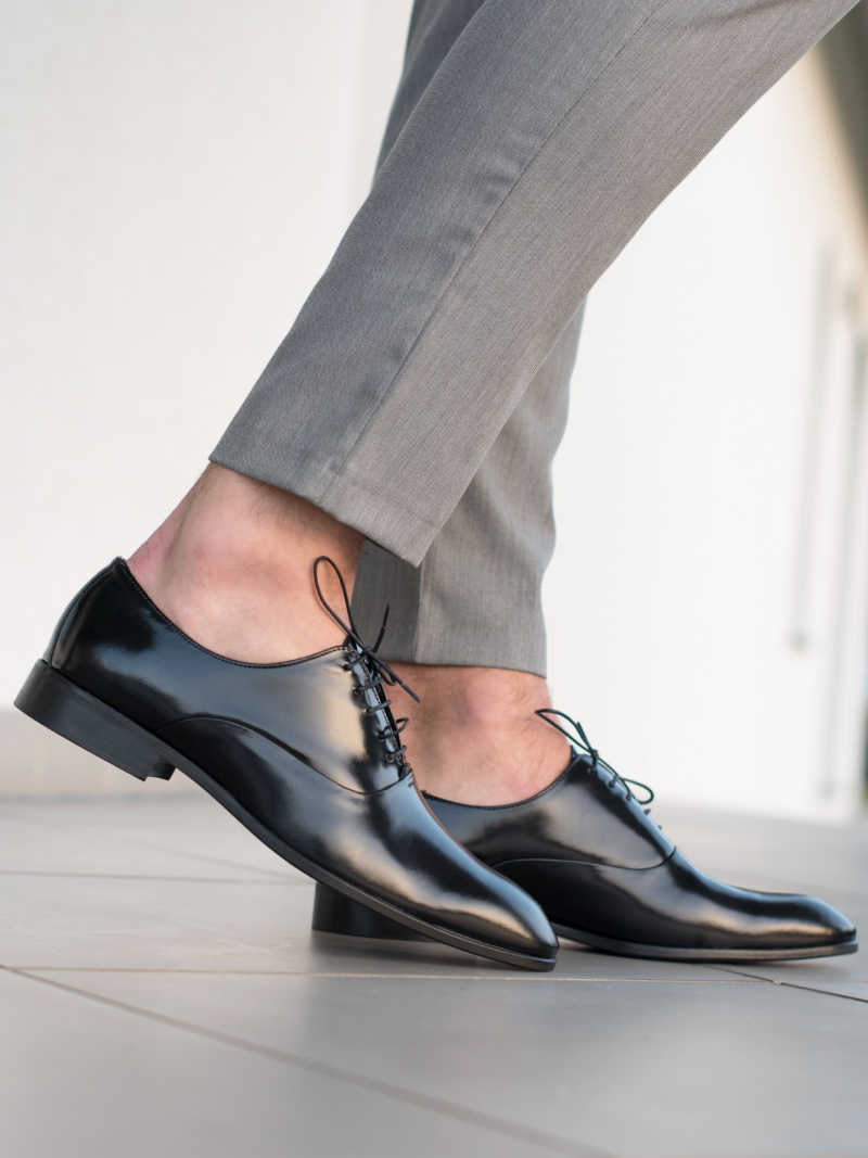 Eleganckie oxfordy męskie z licowej skóry wykończonej na wysoki połysk
