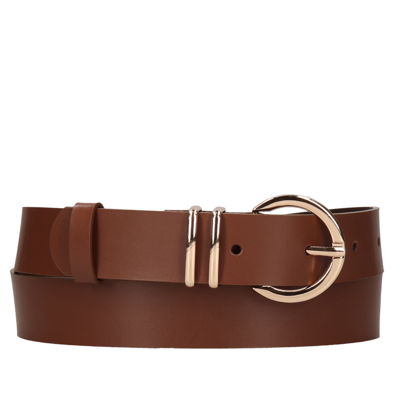 Brązowy pasek damski wykonany został z najwyższej jakości skóry licowej. Klasyczny dodatek, który dopełni każdą Twoją stylizację, posiada 2,5 cm szerokości, dzięki temu fantastycznie prezentuje się w połączeniu z jeansami jak i spódnicami. Pasek charakteryzuje się gładką fakturą, a złota klamra z dodatkowymi dwoma metalowymi szlufkami przyciąga spojrzenia. Brązowy pasek damski może stać się również stylowym prezentem dla bliskiej Ci osoby.