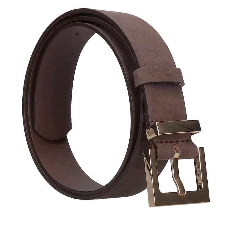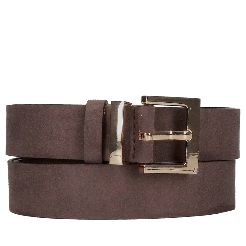 Damski pasek z nubuku w kolorze brązowym ze złotą klamrą