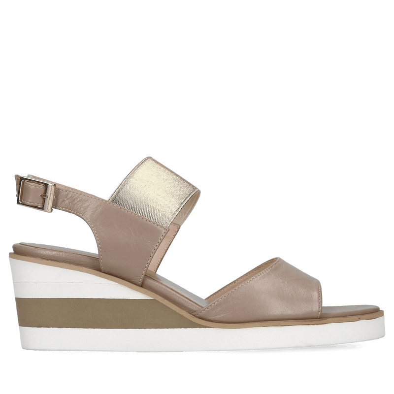 Sandały damskie na koturnie beżowe, skóra naturalna, polska produkcja