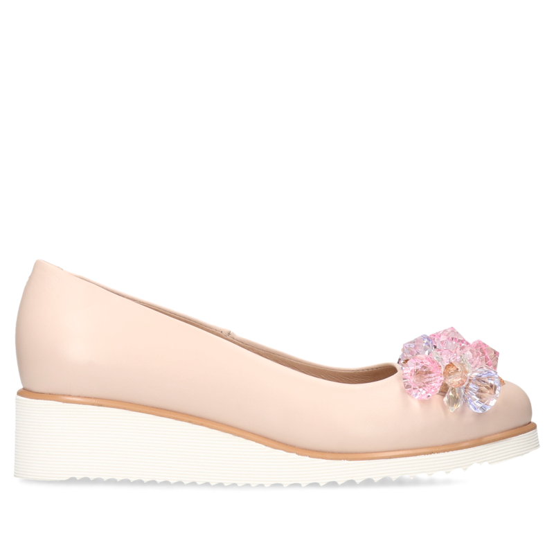 Casualowe czółenka na koturnie z naturalnej skóry licowej