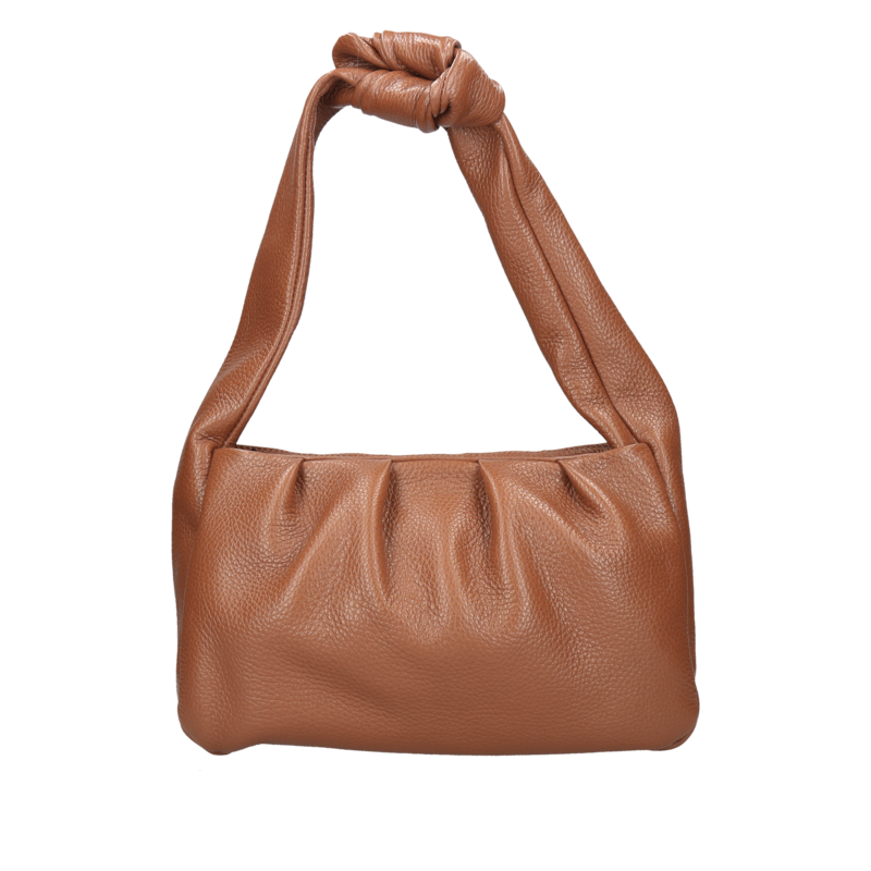 Skórzana torebka marszczona Jaśmina została wykonana ze skóry naturalnej licowej. Brązowa torebka to modna propozycja dla kobiet poszukujących wyjątkowych dodatków garderoby na specjalne okazje. Skórzana torebka marszczona z ozdobnym węzłem na uchwycie pasuje do wielu stylizacji nadając im niepowtarzalności.