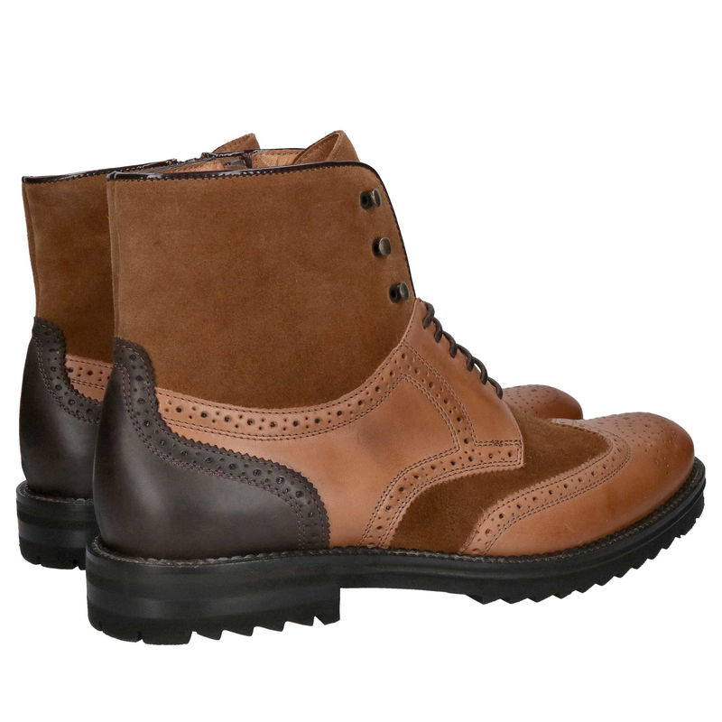 Męskie brązowe sztyblety, wygodne trzewiki męskie z gumami